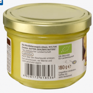Tên sản phẩm chính xác: Sản phẩm chất béo từ sữa hữu cơ (ghee), 99% chất béo