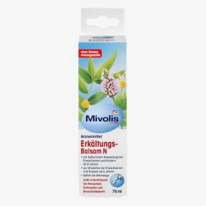 Mivolis Erkältungs Balsam N có tác dụng làm dịu cơn cảm lạnh và khản giọng. Các thành phần hoạt tính có trong dầu có tác dụng làm giảm các triệu chứng cảm lạnh. Xoa bóp ngực và lưng hoặc hít Mivolis Erkältungs Balsam N sẽ mang lại cảm giác dễ thở. Mivolis Erkältungs Balsam N thích hợp để sử dụng ngoài da cho người lớn và trẻ em từ 2 tuổi trở lên và có thể dùng thêm dạng hít cho người lớn và trẻ em từ 6 tuổi trở lên.
