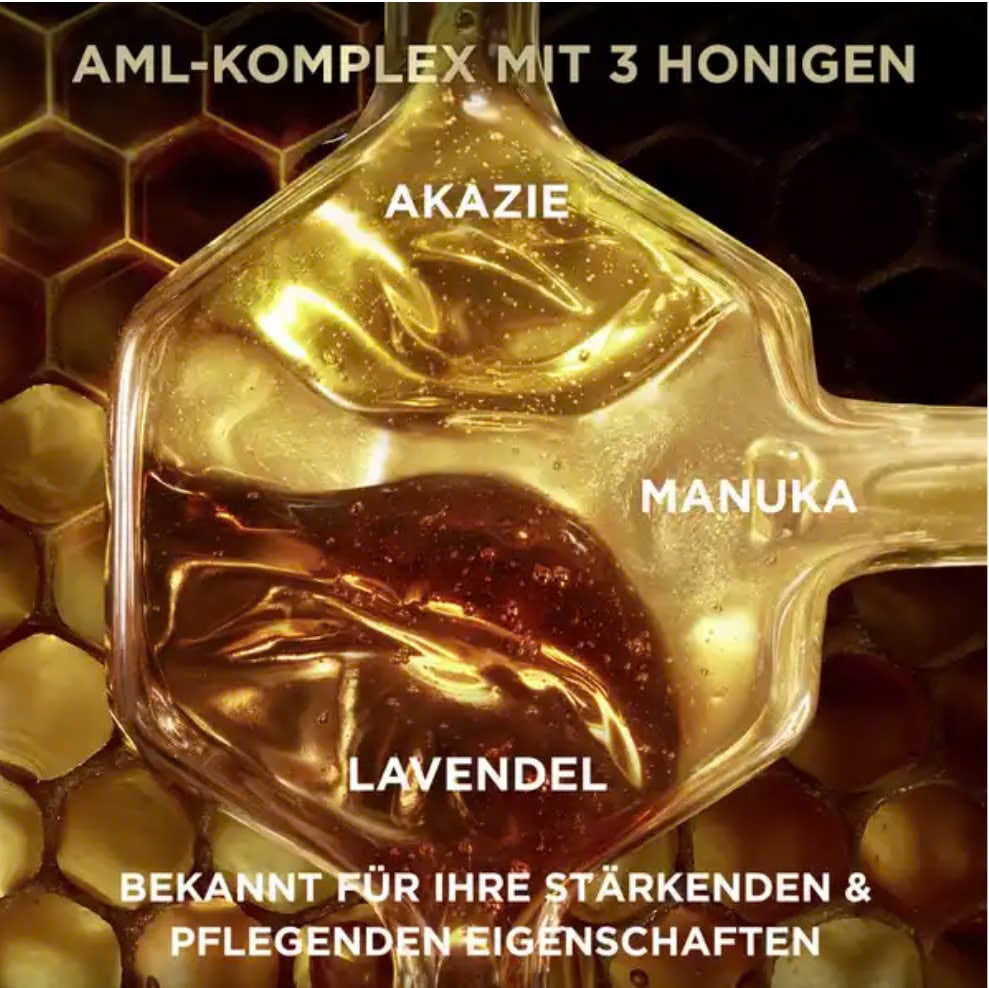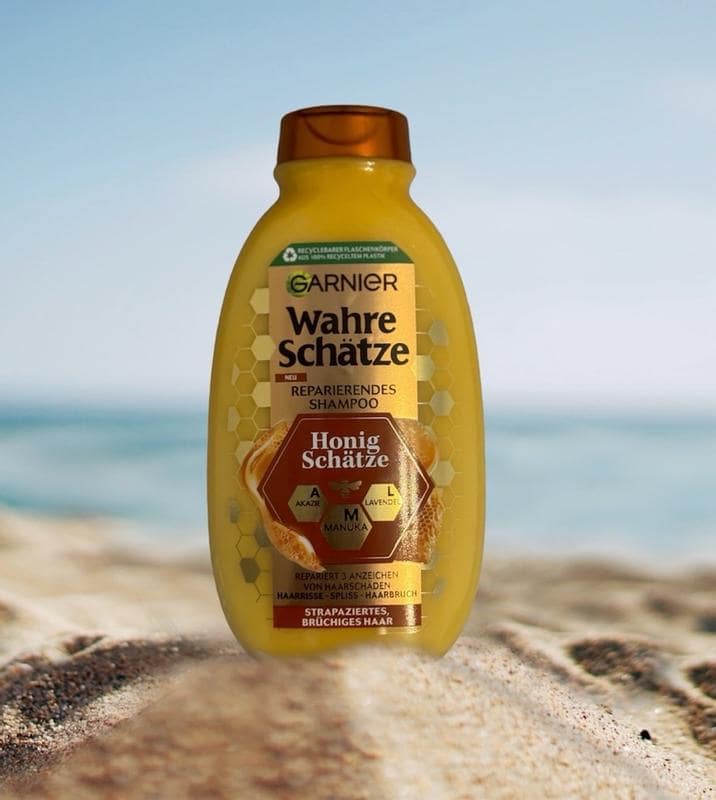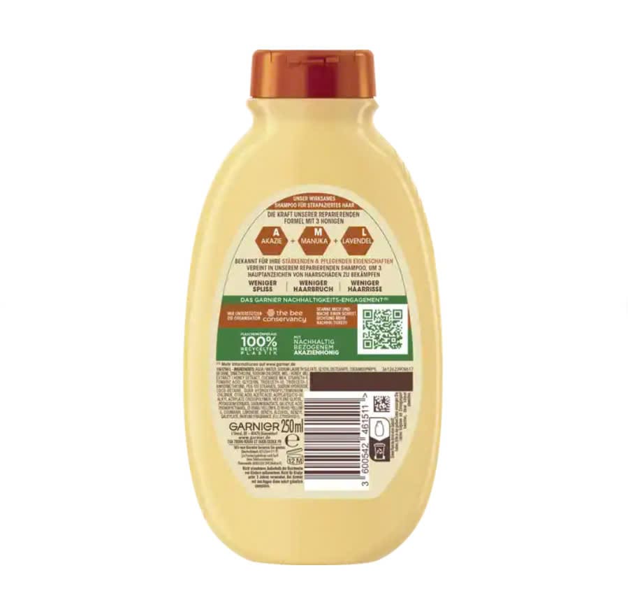 Tạm biệt mái tóc hư tổn, dễ gãy – dầu gội phục hồi Garnier Honig Schatze kết hợp sức mạnh tự nhiên của ba loại mật ong: mật ong acacia, mật ong manuka và mật ong hoa oải hương. Công thức phục hồi của dầu gội Garnier mật ong nổi tiếng với đặc tính tăng cường và nuôi dưỡng, giúp phục hồi các vết nứt, chẻ ngọn và gãy tóc. Dầu gội mật ong hiệu quả với mật ong acacia có nguồn gốc bền vững mang đến cho mái tóc sự chăm sóc tuyệt vời và giúp tóc chắc khỏe đến tận ngọn.