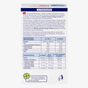 Axit béo omega-3 là một thành phần quan trọng của chế độ ăn uống lành mạnh. Với lượng tiêu thụ hàng ngày là 250 mg EPA + DHA, chúng góp phần duy trì chức năng tim bình thường.