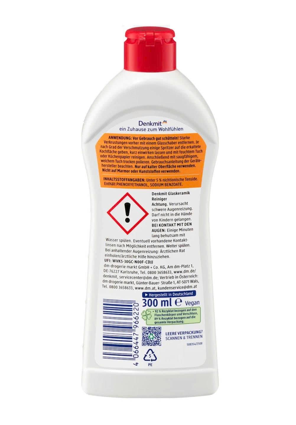 Denkmit Glaskeramikreiniger chính là sự lựa chọn hoàn hảo để làm sạch nhanh chóng mặt bếp từ, ngay cả đối với vết bẩn cứng đầu. Thêm vào đó, Denkmit giúp mặt bếp luôn bóng sáng.