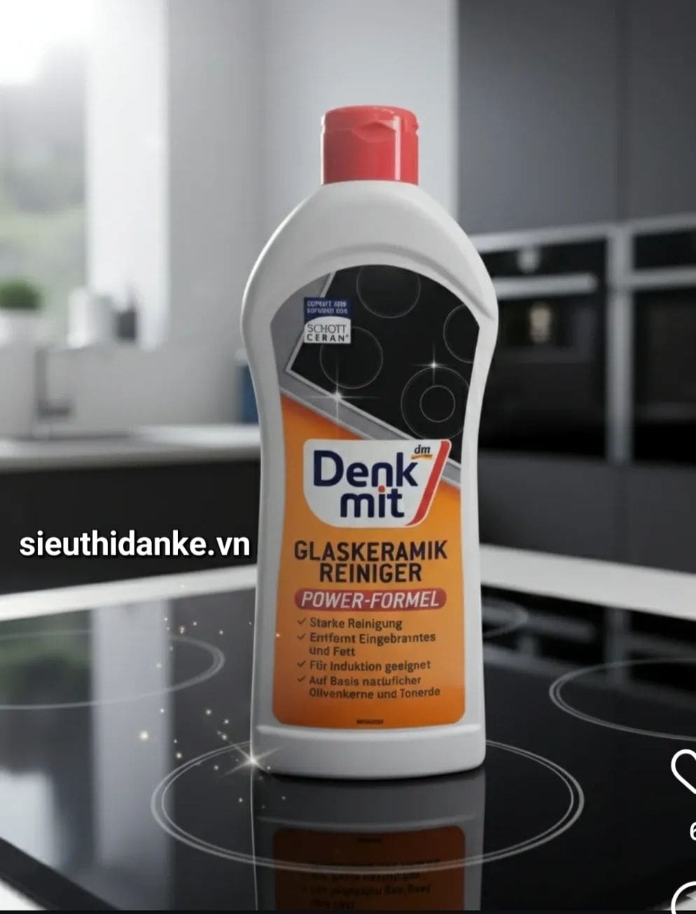 Dung dịch vệ sinh mặt bếp của Denkmit giúp bạn làm sạch bếp điện,bếp từ một cách nhanh chóng. Với công thức 3in1, nó đảm bảo làm sạch mạnh mẽ, làm sáng bóng và chăm sóc chuyên sâu trên bề mặt bếp nấu bằng gốm thủy tinh và mặt bếp cảm ứng. Sản phẩm kết hợp các thành phần tự nhiên như đất sét đánh bóng và ô liu. Ngay cả bụi bẩn cứng đầu cũng bị đánh bật nhanh chóng. Đồng thời, sản phẩm nhẹ nhàng bảo vệ bề mặt bếp nhờ tác dụng làm sạch nhẹ và để lại một lớp màng bảo vệ sau mỗi lần sử dụng. Điều này giúp bạn dễ dàng loại bỏ bụi bẩn hơn. Công nghệ trung tính có tác dụng chống lại những mùi khó chịu, mang lại hương thơm tươi mát cho căn bếp của bạn.