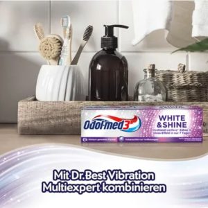 Công thức Odol-med3 White&Shine đã được thử nghiệm lâm sàng với công nghệ Micro Gloss Pearl (1) làm sạch (2) làm mịn và (3) đánh bóng nhẹ bề mặt răng – mang lại hiệu ứng bóng đã được chứng minh lâm sàng chỉ sau 7 ngày và hàm răng sáng bóng, mịn màng, trắng hơn rõ rệt. Công thức làm trắng lâu dài tạo thành lớp màng bảo vệ xung quanh răng, giúp ngăn ngừa tình trạng đổi màu mới – giúp răng trắng lâu hơn và có nụ cười tự tin.