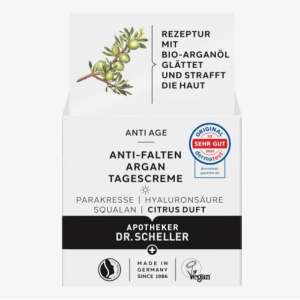 Một “bước nâng” tự nhiên cho mỗi ngày! Kem dưỡng hữu cơ Dr. Scheller Anti-Falten Argan chống nếp nhăn làm mịn da để làm sáng da và tăng độ đàn hồi, giảm độ sâu nếp nhăn và bảo vệ chống lão hóa da sớm.