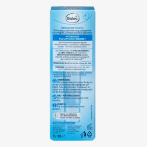 Kem dưỡng mắt Aqua Eye Roll-On của Balea cung cấp độ ẩm lâu dài – cho làn da tươi tắn và rạng rỡ. Đầu bi lăn mát-xa làm mát kích thích vi tuần hoàn và do đó có thể làm giảm sưng tấy – cho vẻ ngoài rạng rỡ. Kết cấu nhẹ, nhanh chóng được hấp thụ mà không gây nhờn. Đồng thời, công thức chăm sóc với chiết xuất tảo và các chất dưỡng ẩm tự nhiên cung cấp độ ẩm lâu dài và giảm độ sâu của nếp nhăn. Provitamin B5 giúp làm dịu da. Vitamin E hỗ trợ bảo vệ da chống lại các tác động từ môi trường liên quan đến tia cực tím.