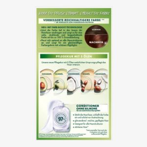 Màu 6.3 Dunkles Goldblond – vàng nâu – mang lại cho tóc vẻ bóng mượt rạng rỡ và màu nâu sô cô la ấm áp. Ngay cả tóc bạc cũng được che phủ 100%. Kết quả là một màu nâu đậm với độ dốc màu hài hòa, tỏa sáng mạnh mẽ trong 8 tuần.