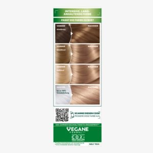 Màu 7 Toffee Mittelblond – vàng vừa – màu tạo cho mái tóc bóng mượt, rạng rỡ và một màu nâu vàng nâu đậm đà. Ngay cả tóc bạc cũng được che phủ 100%. Kết quả là một màu nâu đậm với độ dốc màu hài hòa, tỏa sáng mạnh mẽ trong 8 tuần.