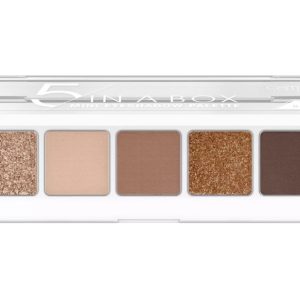 Bảng phấn mắt Catrice 5 In A Box là sản phẩm làm đẹp được thiết kế dành riêng cho khách du lịch. Kích thước nhỏ gọn của sản phẩm dễ dàng bỏ vào bất kỳ túi trang điểm hoặc túi xách nào, để bạn có thể chăm chút cho vẻ ngoài của mình mọi lúc mọi nơi. Bảng màu gồm 5 phấn mắt tuyệt đẹp với lớp nền lì và mịn kết hợp hoàn hảo với nhau. Công thức có sắc tố cao để lại màu sắc đậm trên mí mắt chỉ bằng một nét vẽ và lâu trôi. Ngoài ra, thành phần của phấn mắt được làm giàu với dầu hoa hồng, không chỉ chăm sóc làn da nhạy cảm mà còn giúp phấn mắt đặc biệt mềm mại và dễ chịu khi thoa.