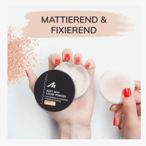 - Phấn phủ dạng bột Soft Mat Loose Powder của Manhattan là một loại phấn siêu mịn giúp làm mờ da một cách hoàn hảo. Tông màu tự nhiên nhẹ của phấn tạo nên một làn da mờ và đều màu.