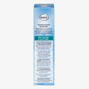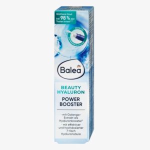 Balea Hyaluron Power Booster chứa công thức bộ đôi axit hyaluronic. Điều này giúp cung cấp độ ẩm bổ sung nhanh chóng. Chiết xuất riềng có trong nó cũng tạo thành một lớp màng bảo vệ trên da và làm đầy các nếp nhăn nhỏ từ trong ra ngoài. Kết quả là một làn da trẻ trung mịn màng và rạng rỡ, tràn đầy sức sống và tươi trẻ.