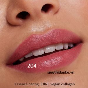 Son Essence Caring Shine Vegan Collagen – một thế hệ son môi kết hợp giữa chăm sóc, tỏa sáng, hiệu ứng căng mọng và nhiều lựa chọn màu sắc tuyệt đẹp. Kết cấu nuôi dưỡng với chất thay thế collagen giúp che đi các nếp nhăn, có tác dụng làm mịn và làm cho đôi môi trông đầy đặn hơn rõ rệt – và nó 100% thuần chay. Được làm giàu với axit hyaluronic, công thức cung cấp độ ẩm. Nhờ kết cấu mịn màng, nó mang lại cảm giác mềm mại và siêu mềm mại trên môi. Đồng thời, hiệu ứng râm ran nhẹ mang lại cảm giác sảng khoái dễ chịu. Nhờ độ che phủ trung bình, không có giới hạn nào cho phong cách của bạn – bạn có thể tạo cả vẻ ngoài tự nhiên hoặc độ che phủ mạnh với lớp hoàn thiện sáng bóng.