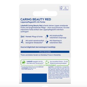 Son Labello Caring Beauty, son màu kèm dưỡng môi, màu Red- đỏ, 4.8 g