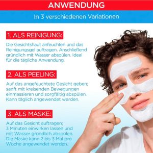 Sữa rửa mặt: làm ướt mặt và tay bằng nước sạch. Cho một lượng vừa đủ sữa rửa mặt Garnier Hautklar 3 in 1 Anti Mitesser ra tay và tạo bọt. Rồi thoa nhẹ nhàng lên mặt. Sau đó rửa lại bằng nước sạch. Sử dụng hàng ngày làm giảm bã nhờn dư thừa, giúp giảm dần mụn và chống lại sự hình thành mụn mới.
