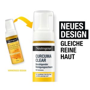 Sữa rửa mặt tinh chất nghệ Neutrogena Curcuma Clear nhẹ nhàng làm sạch, chống và ngăn ngừa tạp chất. Đồng thời, nó làm dịu làn da căng thẳng dễ bị mụn. Sản phẩm giúp loại bỏ hiệu quả bụi bẩn bít lỗ chân lông, bã nhờn dư thừa và lớp trang điểm trong khi vẫn duy trì độ ẩm cho da – cho làn da mềm mại và khỏe mạnh. Sản phẩm đặc biệt thích hợp cho da nhạy cảm dễ bị mụn, da hỗn hợp hoặc da khô. Nó không để lại bất kỳ dư lượng không mong muốn trên da và không làm tắc nghẽn lỗ chân lông.
