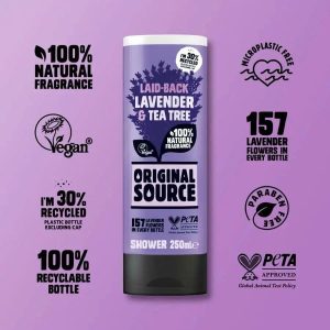 Hãy thay đổi thói quen tắm gội thư giãn với sữa tắm Lavender & Tea Tree từ Original Source. 157 bông hoa oải hương dịu nhẹ sẽ xua tan mọi mệt mỏi của ngày dài và hương tràm trà tươi mát sẽ biến phòng tắm của bạn thành một ốc đảo mát mẻ và thư thái. Hãy biến thời gian tắm gội thành “thời gian của riêng bạn” và đắm mình trong hương thơm thảo mộc của thiên nhiên.