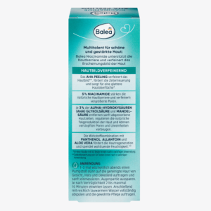 Tẩy da chết AHA Peeling thuần chay từ Balea tinh chỉnh làn da, thúc đẩy tái tạo tế bào và đảm bảo làn da mịn màng và rạng rỡ. Nó giải phóng làn da khỏi các tế bào da dư thừa và mang lại vẻ rạng rỡ mới. Làn da trông rõ ràng hơn, làn da tươi tắn và đều màu hơn.