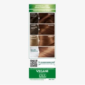 Màu 5.3 Samtbraun – nâu hạt dẻ – màu tạo cho mái tóc bóng mượt, rạng rỡ và một màu nâu nhung trung bình. Ngay cả tóc bạc cũng được che phủ 100%. Kết quả là một màu nâu đậm với độ dốc màu hài hòa, tỏa sáng mạnh mẽ trong 8 tuần.