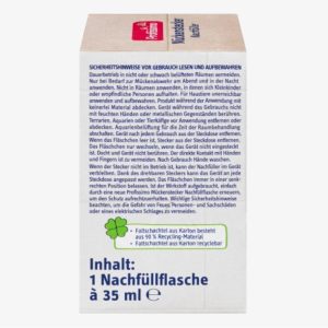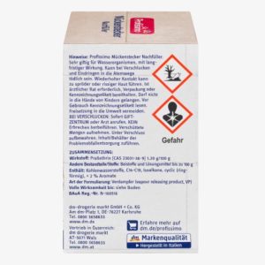 Tinh dầu cắm điện đuổi muỗi Profissimo là chất kiểm soát côn trùng không có mùi thơm, không ồn ào, bảo vệ chống muỗi và các loại côn trùng khác. Chất lỏng bay hơi và giải phóng thành phần hoạt tính vào không khí trong phòng, do đó côn trùng sẽ được ngăn chặn trong phòng. Điều này có nghĩa là bạn có thể tận hưởng một đêm yên tĩnh mà không bị quấy rầy bởi tiếng ồn ào khó chịu.