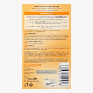 Hãy tận hưởng khoảnh khắc hạnh phúc của cá nhân bạn – với tinh chất vitamin C từ Balea! Viên nang chứa vitamin C và E có tác dụng giữ ẩm và chống oxy hóa. Ngoài ra, Collageneer® có thể hỗ trợ sản xuất collagen của chính da và do đó đảm bảo làn da tươi trẻ. Công thức làm sáng da đã được chứng minh với dầu cam làm cho làn da của bạn tỏa sáng và nâng niu các giác quan với mùi hương cam chanh tiếp thêm sinh lực. Viên nang Balea vitamin C Konzentrat cho bạn một làn da đều màu!
