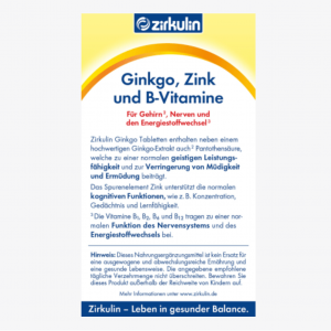 Việc cung cấp cân bằng oxy và chất dinh dưỡng cho não là điều kiện tiên quyết cho hiệu suất và khả năng tập trung. Viên uống Zirkulin Ginkgo chứa chiết xuất bạch quả chất lượng cao, các thành phần trong đó có thể góp phần vào quá trình lưu thông vi mô và cung cấp oxy cho não.