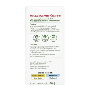 Chiết xuất lá atiso khô (72,7%, chiết xuất nước 1,5-3,0:1), hydroxypropylmethylcellulose, inulin, chất giải phóng muối magie của axit béo.