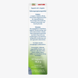 L-arginine 80,7%, gelatine (thịt bò), chất giải phóng muối magiê của axit béo và silicon dioxide, chất tạo màu titanium dioxide