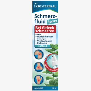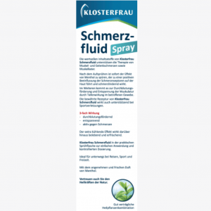 Sau khi xịt vào, có thể cảm nhận được ngay tác dụng của tinh dầu bạc hà, dẫn đến tác động tích cực đến các thụ thể đau trên da và có tác dụng giảm đau. Ngoài ra, sự lưu thông máu được kích thích và các cơ được thư giãn thông qua tác động sâu vào các mô bị ảnh hưởng. Công thức đã được thử nghiệm của Klosterfrau Schmerzfluid cũng có tác dụng hỗ trợ đối với chấn thương thể thao. Tác dụng làm mát thêm cũng là tiếp thêm sinh lực và sảng khoái.