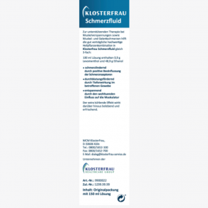 Nếu hệ thống cơ xương khớp được sử dụng nhiều trong thời gian giải trí, khi chơi thể thao hoặc khi đi du lịch, các cơn đau ở khớp và cơ có thể nhanh chóng xảy ra. Các thành phần quý giá của chất lỏng giảm đau Klosterfrau hỗ trợ điều trị đau cơ và khớp, giảm đau ở các cơ bị đau.