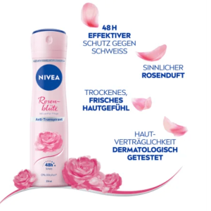 Xịt khử mùi Nivea Rosen blute Anti-transpirant cung cấp khả năng bảo vệ lâu dài và đáng tin cậy trong 48 giờ chống lại mồ hôi và mùi cơ thể. Với một hương thơm tinh tế, chất lượng cao và hoa hồng thanh lịch của sự sang trọng tinh khiết nhẹ nhàng vuốt ve khía cạnh nữ tính của bạn. Nó mang lại sự tươi mát nhẹ nhàng và mang lại cho vùng nách của bạn cảm giác dễ chịu trên da – suốt cả ngày.