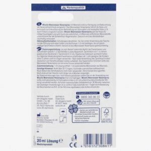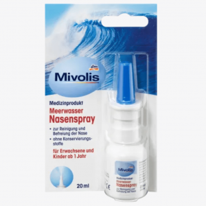 Xịt mũi nước biển Mivolis với muối biển được sử dụng để làm sạch và làm ẩm màng nhầy mũi. Nước biển xịt mũi giúp giải phóng mũi và cũng có thể được sử dụng để hỗ trợ điều trị cảm lạnh và nghẹt mũi (ví dụ: do phấn hoa). Xịt mũi nước biển Mivolis cung cấp cho mũi độ ẩm cần thiết và nhờ các khoáng chất tự nhiên có trong muối biển, hỗ trợ tái tạo màng nhầy. Điều này cải thiện hạnh phúc về lâu dài.